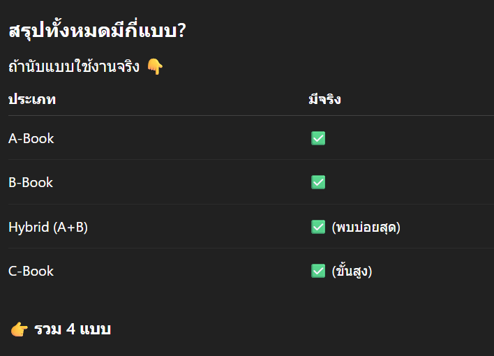 | ค่าย | ประเภทบัญชี | Spread ค่าเฉลี่ย |